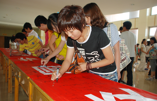 本站讯:为深入贯彻落实上级关于节能宣传周活动的指示精神,6月15日,学校在综合办公大楼一楼大厅举行主题为“校园节能我做表率”的节能倡议签名活动。学校领导辛丕宏、王守伦、牛钟顺、冯滨鲁、邢同学、马茜华出席签名仪式并郑重签上自己的名字。部分教职工和学生代表参加了签字活动。 我校本次节能宣传周活动,分节能宣传和能源短缺体验两大板块,分别开展找不节能、节能倡议书、节能倡议签名和绿色出行体验、停开空调体验、停开电梯体验共六项活动。节能宣传周活动旨在进一步推动我校公共机构节能工作和打造节约型校园,深入开展公共机构节能宣传教育,提高广大师生员工资源忧患意识、责任意识和节能意识。 (文/图:温学洪/张丹琳 编辑:新闻中心) 新闻稿件信箱:xinwzx@126.com,欢迎投稿!