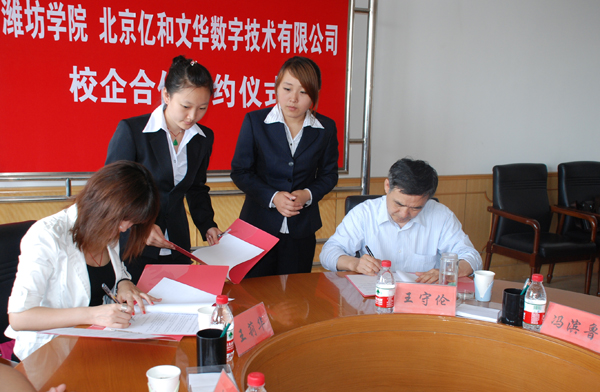 本站讯:6月2日,院长王守伦与北京亿和文华数字技术有限公司总经理王莉华签署了校企合作协议。副院长冯滨鲁出席签约仪式。教务处、教育科学与传媒工程学院负责同志参加了活动。