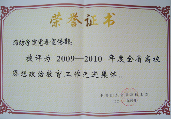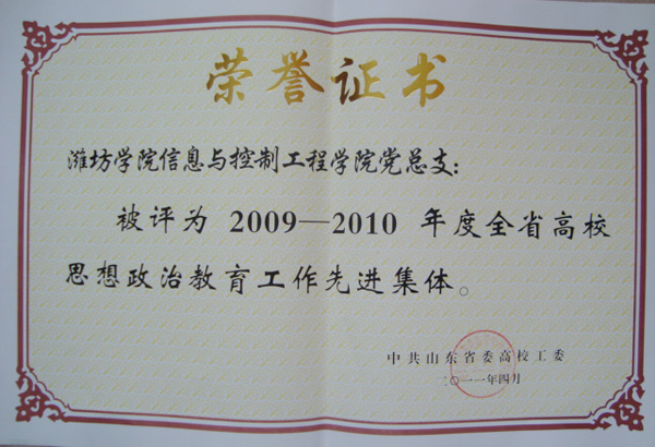 本站讯:山东省委高校工委主办的2009—2010年度全省高校思想政治教育工作先进集体、先进个人评选活动日前揭晓。我校党委宣传部、信息与控制工程学院党总支被评为先进集体,李学军、刘维利、郭建伟、姚秀琦被评为先进个人。