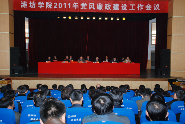 本站讯:3月18日,学校在闻韶楼报告厅召开2011年党风廉政建设工作会议。党委书记辛丕宏、院长王守伦代表学校党委、行政与部分中层部门党政负责人签订了《潍坊学院2011年度党风廉政建设责任书》,辛丕宏在讲话中指出,加强党风廉政建设,坚持党的领导是根本的政治保证。全校上下各级党组织和全体党员干部,要坚持党要管党、从严治党的方针,以强烈的政治责任感和高度的事业心,始终把党风廉政建设和反腐败工作纳入整体工作之中,突出重点,强力推进,一级抓一级,层层抓落实。会议由党委副书记牛钟顺主持,纪委书记马茜华传达上级纪检监察会议和全市党务公开会议精神。副院长王清明、丁子信出席会议。