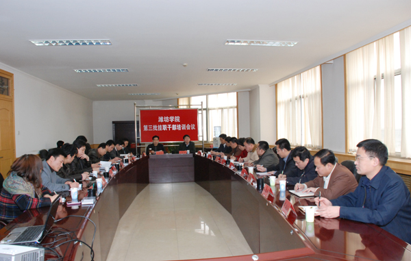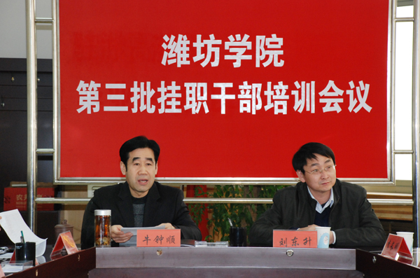 牛钟顺在讲话时指出,经过多方协调沟通,学校党委研究确定了第三批参加挂职锻炼的22名干部人选,其中包括因工作需要和应挂职单位要求延长期限的6名第二批挂职干部。选派中青年管理干部和高层次人才到党政机关、企事业单位挂职锻炼,是我校干部培养的重要途径,也是我校全面落实科学发展观,认真贯彻十七届四中、五中全会精神和学校第二次党代会精神的具体举措,对于干部、人才能力素质的全面提高,对于促进学校发展与地方经济社会发展的融合,有着重要的现实意义。有机会参加挂职锻炼,既是一份光荣,更是一种责任。我们长期在高校工作,业务单纯、接触面窄,工作思维存在着定势和局限,特别是对党政机关和企事业单位的工作性质、工作程序不甚熟悉。举办这次培训,就是为了让大家初步了解挂职工作的特点和基本要求,便于大家更快、更好地适应新的工作。他希望大家认真学习领会培训内容,以实实在在的工作业绩和廉正勤勉的工作作风,展现潍坊学院干部的良好形象。