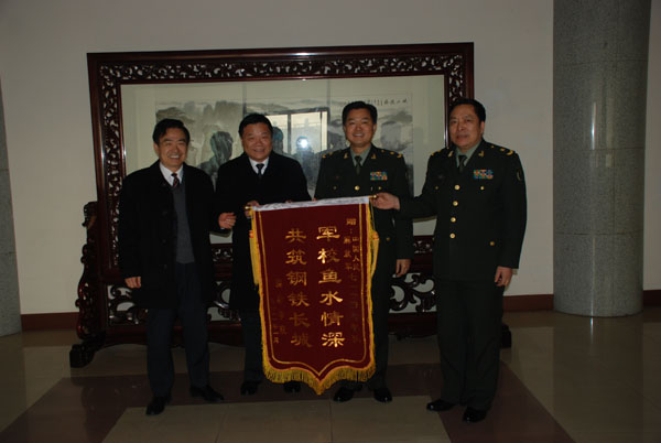 本站讯:新春佳节将至,1月20日,学校党委书记辛丕宏、院长王守伦到潍坊军分区、某部走访慰问部队官兵,送去了慰问品和锦旗,对部队多年来对学校的支持表示感谢,并邀请部队首长到学校参观访问。交谈中,辛丕宏介绍了学校的发展情况,希望今后继续加强合作。