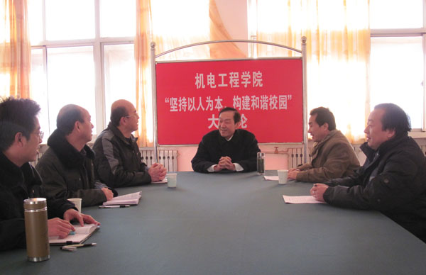 本站讯:12月14日、15日,副院长王慧汉分别参加数学与信息科学学院、机电工程学院“坚持以人为本,构建和谐校园”专题大讨论。
