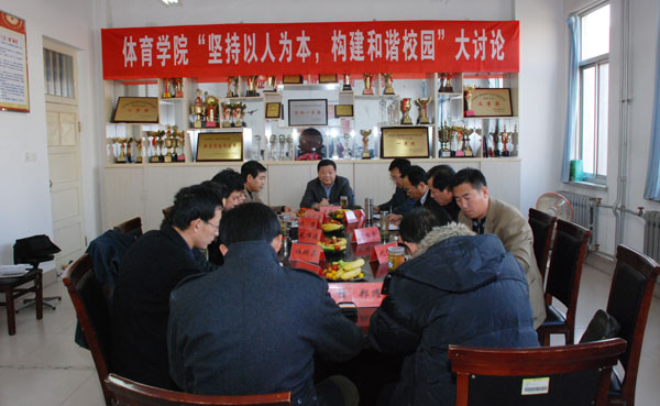 体育学院的班子成员、教师代表围绕如何以人为本搞好教育教学改革畅谈了该院的做法、个人的体会和对未来的思考。辛丕宏在听取了大家的讨论后谈了三点意见。第一,大讨论要把握好主题。要以师生员工的全面发展为本,在共同的愿景下团结奋进。构建和谐校园与从严治校并不矛盾,要从严治党、从严治校、从严治学、从严治教,和而不同,宽严相济。和谐校园的内涵应更充实,一个和谐的校园应该是一个学习型校园、信息化校园、绿色校园、平安校园。第二,大讨论要紧密联系实际。体育学院提出教改方案后要继续深入研究其落实、深化,不能停滞。要找到自己的定位,发挥比较优势,努力打造特色。第三,要搞好总结。要从各个方面巩固每个专题的阶段性成果,真正落实大讨论的总要求,做好总结,有所收获。大讨论的积极成果要反映和体现在实际行动上。