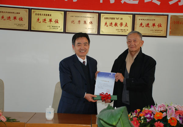 刘锡自幼就有上大学的梦想,由于种种原因,中学毕业后,他就不得不终止了学业。但他对知识的学习从未止步。他自学了高等数学、电动力学、量子力学等多学科知识,还先后到中国科学院、山东大学等进修,成为了名副其实的终身学习的实践者。刘锡老人有多项发明问世并取得6项国家专利。近期,他又在探索运用物联网技术远程监护家庭病房项目。因为在此项目中遇到了不少难题,老人遂又产生了上大学系统学习相关知识的想法。在得知通过我校远程开放教育可以系统学习专业知识并可获得国家承认的学历这一信息后,刘锡老人欣然来我校选报了计算机网络专业专科层次的学习。按照他个人制定的学习计划,学完专科,他还要再读本科,再读研究生。