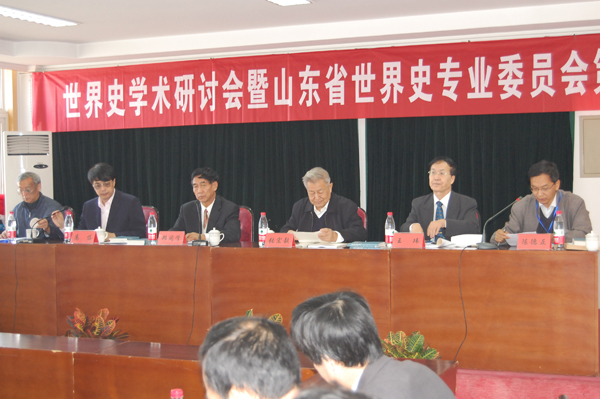 北京师范大学教授、中国社会科学院世界历史研究所学术委员会副主任委员、原中国世界现代史研究会会长张宏毅先生,北京大学教授、研究生院副院长高岱先生,山东省世界史专业委员会主任委员、山东师范大学教授王玮先生,分别作了题为“重视大国间横向比较研究——以中苏美(俄)三国为例”、“英国资产阶级革命概念的源起与演变”、“世界史研究的视野与视角及世界史教学的革新与守成”的大会主题报告。我校历史文化与旅游学院于民博士等7名与会代表分别就自己提交的论文阐述了自己的研究观点,我校历史文化与旅游学院马焕明教授新当选为副主任委员。