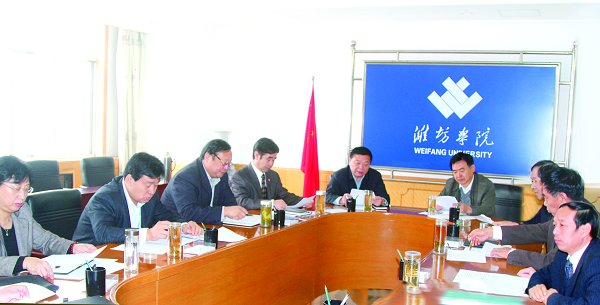 第三,要以优异成绩迎接党的十八大召开。我们要以教学、科研、管理、服务的优异成绩,以服务潍坊的优异成绩,以创先争优的优异成绩,迎接党的十八大的胜利召开。作为高校,在促进文化大发展、大繁荣中应该大有作为。我们要认真研究大学文化建设。要按照分工,结合实际把工作做好。