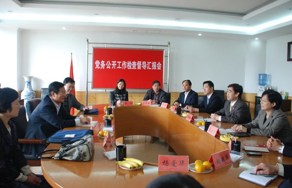 检查组一行到现场查看了档案材料及网络公开信息。在听取了学校对党务公开工作有关情况的汇报后,检查组对我校的党务公开工作给予高度评价。检查组认为,我校的党务公开工作领导重视,氛围浓厚,工作扎实细致,走在了全市前列。