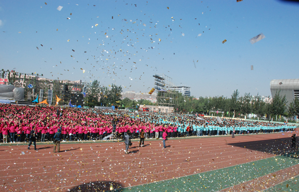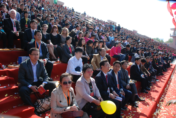 上午10时,第十届全国人大常委会副委员长许嘉璐宣布:“潍坊学院建校60周年庆祝大会开幕!”顿时,全场掌声雷动,60响迎宾礼炮依次鸣响,600羽和平鸽放飞蓝天,200支喜庆鞭炮齐鸣,2000个气球腾空而起。