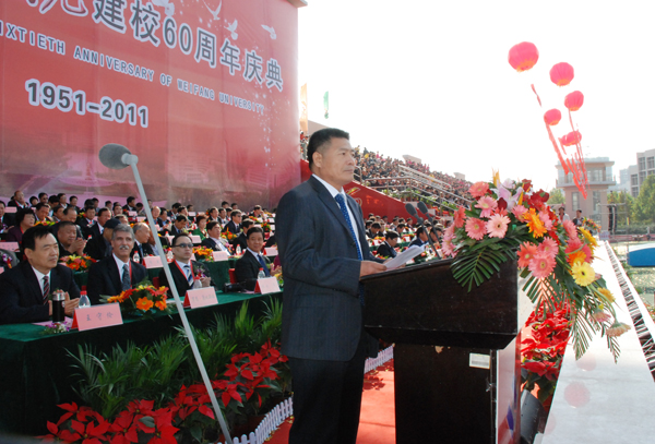 最后,辛丕宏书记代表学校全体师生员工表示,我们一定不辜负上级党委政府、社会各界和广大校友的期望,以60周年校庆为契机,全面贯彻党的教育方针,以办人民满意的大学为已任,继承和发扬优良办学传统,锐意进取,开拓创新,加快特色鲜明的综合性大学建设步伐,为经济社会发展做出新的更大的贡献!