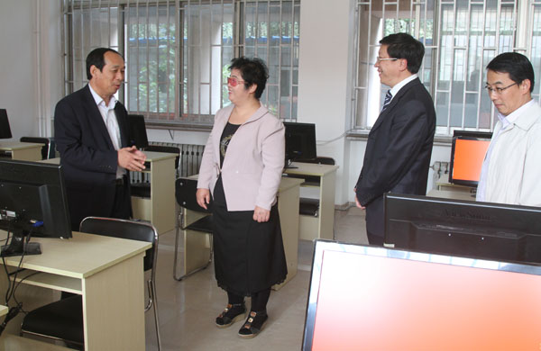 揭牌后,丁子信参观了英华计算机工作室。他要求教务处一定要做好管理和维护工作。据了解,英华国际学院共捐赠计算机30台。
