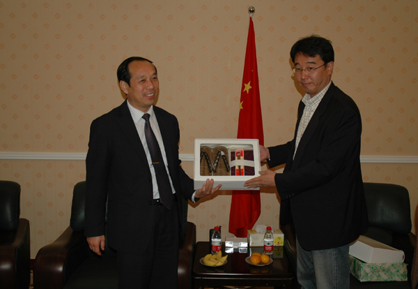 丁子信还会见了前来参加校庆的日本大阪经济法科大学国际部主任裴龙。