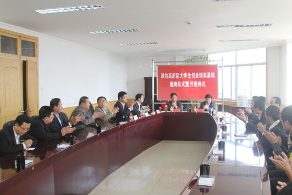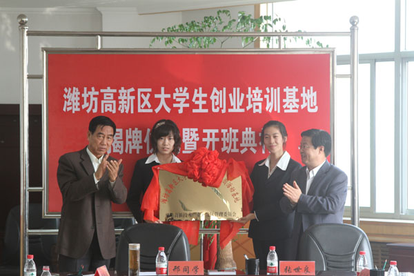 本站讯:10月14日,潍坊高新区大学生创业培训进校园活动基地和潍坊学院大学生创业基地揭牌暨开班仪式举行。副院长邢同学,高新区党工委委员、管委会调研员张世良出席揭牌仪式并为基地揭牌,高新区相关单位负责人、法学院部分师生参加了活动。