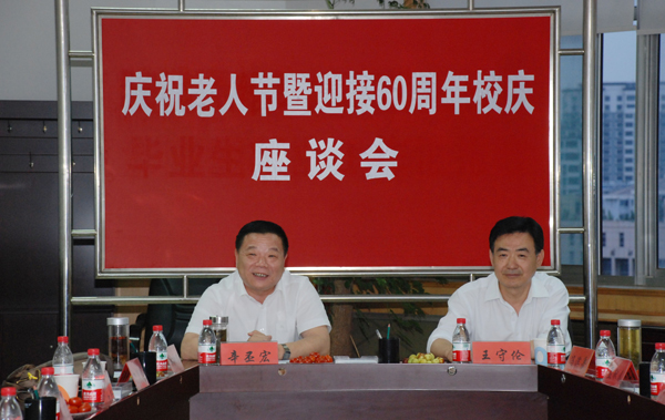 本站讯:9月27日,在第24个老人节和60周年校庆即将来临之际,学校邀请部分老领导、老同志来校召开庆祝老人节暨迎接60周年校庆座谈会,通报学校工作情况,听取意见和建议。党委书记辛丕宏主持座谈会,院长王守伦在会上讲话。党委副书记牛钟顺、副院长冯滨鲁出席座谈会。