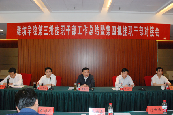 辛丕宏在讲话中介绍了学校的基本情况,重点介绍了学校的四大战略、正在稳步推进的教育教学改革和《潍坊学院服务潍坊行动计划(2011—2015年)》。他指出,学校的干部挂职锻炼工作办法在实践的基础上不断完善,发挥的作用越来越大。