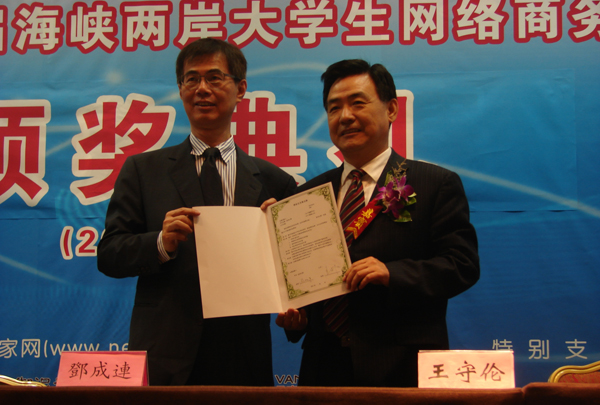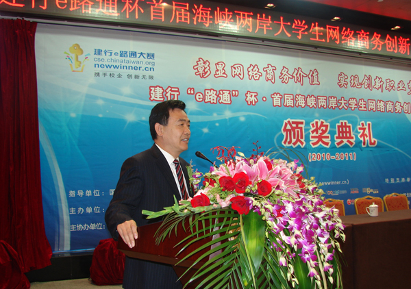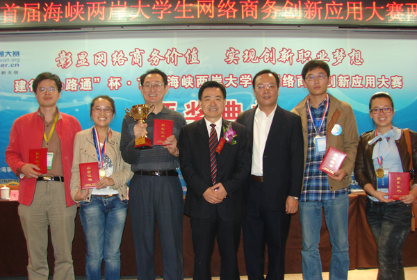 本站讯:9月20日,建行“e路通”杯首届海峡两岸大学生网络商务创新应用大赛两岸总决赛颁奖典礼在北京举行。经过激励角逐,我校与台湾明道大学、台湾实践大学联合组队的“e缘两岸”团队获得季军。冠军由西安邮电学院“随风E起冲”团队摘得,来自台湾真理大学的真理行销团队则获得亚军。来自两岸23所高校共23支队伍获奖,其中4支台湾高校队伍的成绩名列前茅。