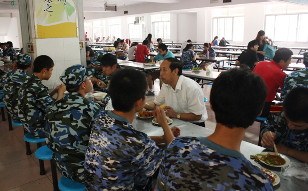 本站讯:日前,副院长丁子信带领总务处有关人员到学生食堂检查卫生安全,与学生一起就餐,对本学期学生食堂管理工作提出了新的要求。
