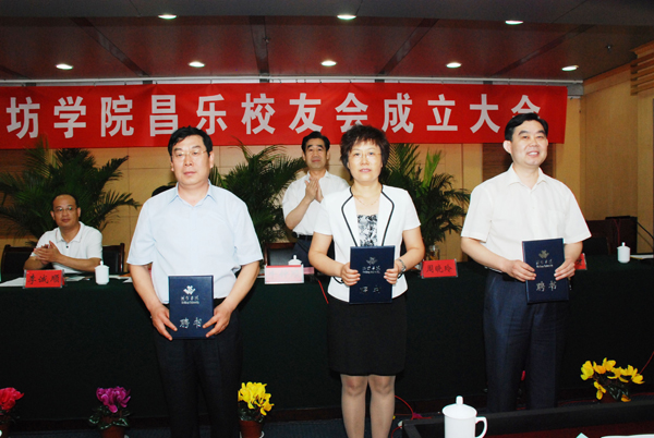 昌乐校友们推选产生了名誉会长、会长、副会长、秘书长。牛钟顺代表学校为他们颁发了聘书。昌乐校友会会长韩景国在发言时表达了对母校的深厚感情和为母校做贡献的愿望。秘书长李宪军主持会议。