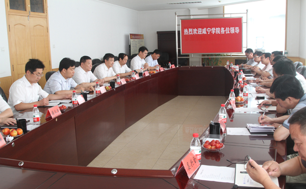 本站讯:7月8日,咸宁学院党委书记夏再兴、院长吴基良、副院长钟儒刚率该院相关部门负责人一行9人来访我校参观访问。学校党委书记辛丕宏,院长王守伦,副院长王清明、丁子信会见了客人,学校办公室、人事处、教务处、科研处、财务处等部门负责人会见时在座。
