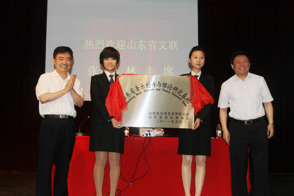 本站讯:6月27日,山东省音乐创作与理论研究基地在我校挂牌。山东省音乐家协会主席张桂林、院长王守伦共同为基地揭牌。