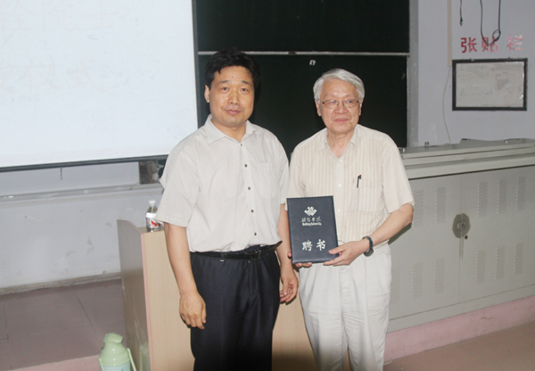 本站讯:日前,中科院院士姚建铨教授,受聘为我校特聘教授。副院长王清明为其颁发了聘书。物理与电子科学学院师生参加了聘书颁发仪式。
