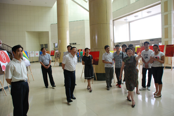本站讯:第十一届大学生科技文化艺术节——“永远跟随党,为潍院喝彩”招贴设计展于6月16日开展。学校领导辛丕宏、王守伦、牛钟顺、王慧汉、邢同学、王清明观看了展览。