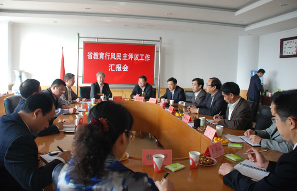汇报会上,王守伦介绍了学校开展教育行风民主评议工作的情况、存在的问题以及下一步的打算。辛丕宏向检查组一行简要介绍了学校的发展历史、办学定位、办学思路以及60周年校庆的情况。听取汇报后,检查组对学校的教育行风民主评议工作给予充分肯定。检查组认为,作为省教育厅第一批抽查的学校,学校的教育行风民主评议工作做得非常好,领导高度重视,认识到位,精心组织,工作全面,有特色,有创新。检查组表示将把在检查中学习到的好经验,进行认真总结。