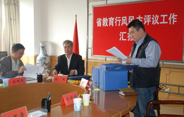 汇报会结束后,检查组随机抽取了部分教职工和学生代表填写了《山东省高等学校教育行风民主评议问卷调查表》,对学校的教育行风民主评议工作进行测评。检查组还查看了学校教育行风民主评议工作的档案材料。