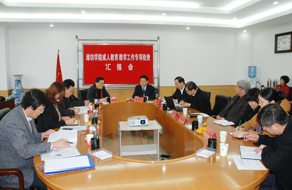 继续教育学院负责同志就我校成人教育教学工作作了汇报。汇报会后,专家组通过查阅资料、召开教师座谈会等形式,对我校成人教育教学情况进行了全面系统的检查。