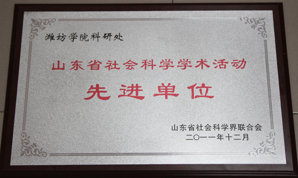 会议为山东省社会科学学术活动先进单位颁奖,并对2011“山东社科论坛”征文的获奖作品进行了表彰。包括我校在内的15所高校获得“山东省社会科学学术活动先进单位”。