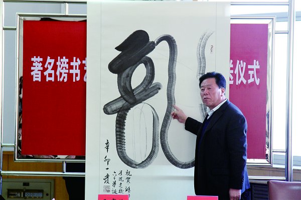 著名榜书艺术家徐一发向学校捐赠“龙”字书写作品