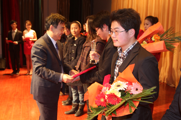 本站讯1222日,由学生工作部、团委、院报编辑部联合主办的2012年元旦晚会暨第二届校园之星颁奖典礼举行。校领导辛丕宏、王守伦、牛钟顺、邢同学出席典礼并为校园之星颁奖。