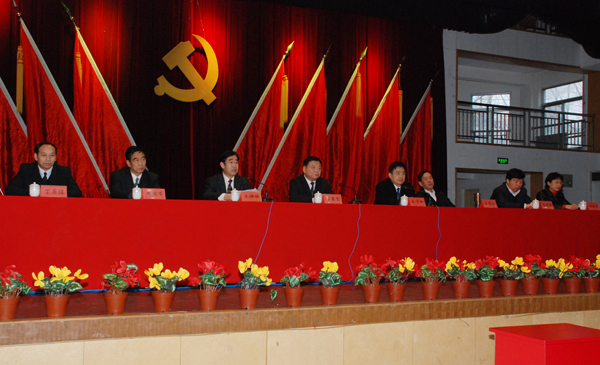 辛丕宏王守伦牛钟顺王慧汉邢同学王清明丁子信马茜华在主席台就坐  牛钟顺主持大会