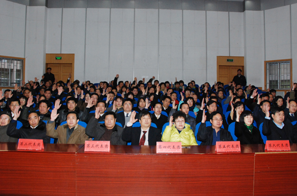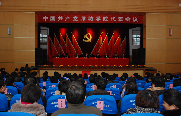 中国共产党潍坊市第11次代表大会定于2012年2月召开。我校的代表选举工作自12月6日正式展开。各党总支(支部)根据市委、学校党委的统一部署,组织基层党支部召开党员大会,全额推荐我校代表候选人人选。全校所有29个党总支(直属党支部)及78个基层党支部和1699名正式党员参加了民主推荐。市委分配我校出席市第11次党代会的代表名额为2名,其中领导干部1名,生产工作一线党员1名。经过三上三下、反复酝酿讨论,学校确定了3名代表候选人,通过全校党员代表会议差额选举产生正式代表2名。