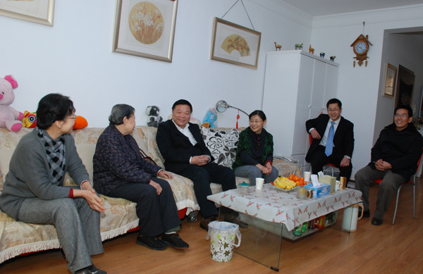 本站讯:1月6日,春节前夕,学校领导辛丕宏、王守伦、牛钟顺、王慧汉、冯滨鲁、邢同学、王清明、丁子信、马茜华分别走访了离休干部和退休厅级干部、市级以上人大代表、政协委员以及民主党派负责人,为他们送去节日的问候和新春的祝福。
