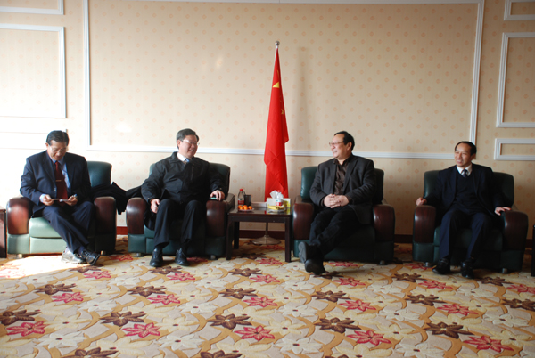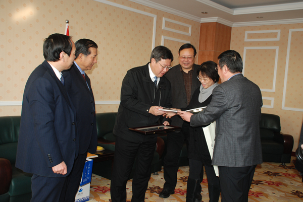 会见时,冯滨鲁向客人介绍了学校基本情况,并感谢蔡裕庆对学校的关心与支持。丁子信向客人赠送了礼物。在冯滨鲁、丁子信的陪同下,蔡裕庆一行先后参观了学校校史馆、潍坊文化名人馆和王筠古籍馆。蔡裕庆一行对我校浓郁的文化氛围表示赞赏,对学校的近几年的快速发展赞叹不已。