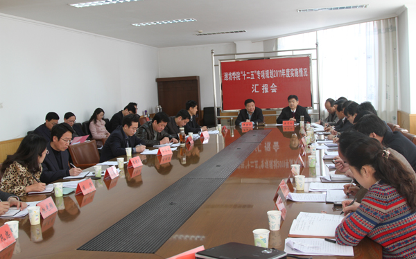 本站讯:3月13日,学校召开“十二五”专项规划2011年度实施情况汇报会。党委书记辛丕宏出席会议并讲话,院长王守伦主持会议。10个专项规划牵头单位负责人分别作“十二五”专项规划2011年度实施情况汇报,学校规划实施领导小组成员参加了会议。