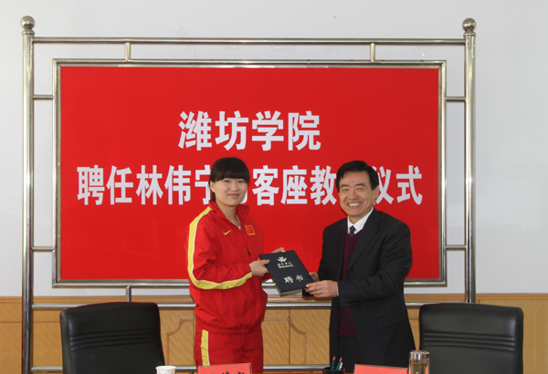 本站讯:4月15日,2000年悉尼奥运会冠军林伟宁受聘为我校客座教授,院长王守伦为其颁发了聘书。活动由副院长王清明主持,党委宣传部、科研处负责同志参加了活动。