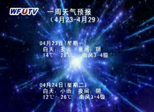 本站讯:4月23日,学校电视台在原来播放《潍院新闻》的基础上,开播了《公益广告》栏目。观众在收看《潍院新闻》的同时,可收看到一周天气预报、校园宣传标语等相关公益广告内容。《公益广告》栏目在《潍院新闻》前滚动播出,周一首播,周二重播。这是我校电视台为丰富电视节目内容、服务师生员工采取的举措之一。