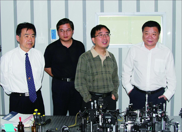 在校期间,潘建伟、王向斌参观了多光子纠缠与操纵实验室,并就实验室建设与学科建设等问题进行了座谈。