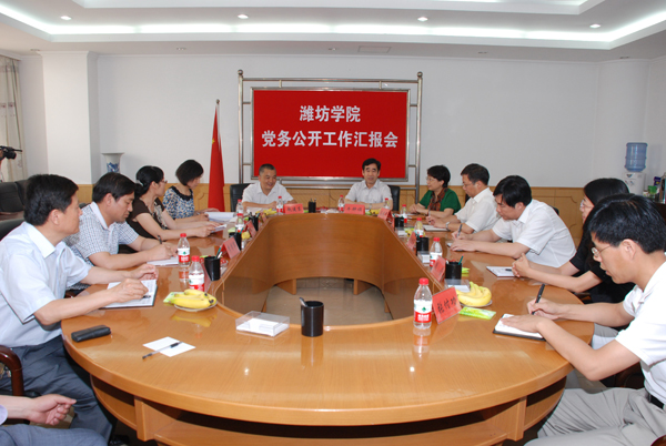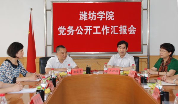 在汇报会上,牛钟顺指出,潍坊市纪委第七纪检组对我校党务公开工作给予大力指导和支持,将我校列为全市示范点建设单位,这是对我们的鼓励和鞭策。我们要以这次检查为新的契机,进一步加强我校的相关工作,争取早日建成党务公开示范点。马茜华汇报了我校党务公开工作的基本情况,她从主要做法、存在的问题、解决措施等方面作了介绍。学校党务公开工作领导小组成员参加了汇报会和相关活动。