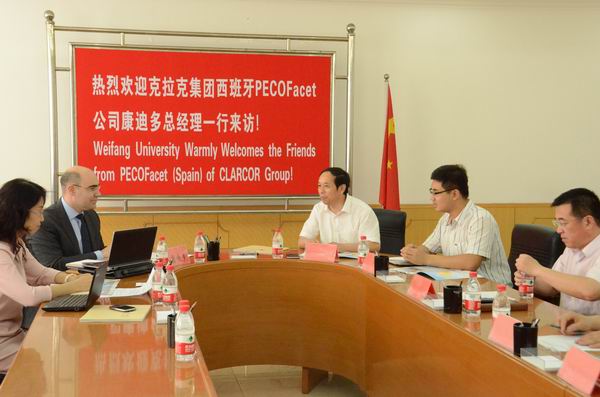 会见时,丁子信向客人介绍了我校的基本情况,特别介绍了我校的重点学科和特色专业,并对该集团捐赠的水净化装置设备在学校的教学科研工作中发挥的作用作了说明。康迪多总经理介绍了PECOFacet公司的情况和特色及欧洲和中国对污水处理技术发展的相关政策。
