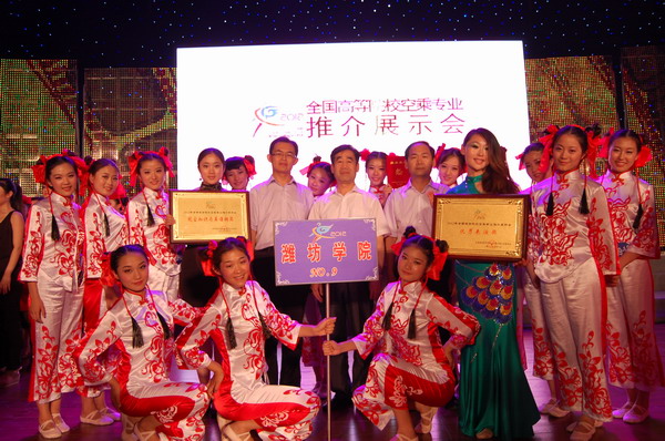 本站讯 近日,由我校历史文化与旅游学院空乘专业16名女生组成的代表队,参加了在北戴河举行的 “2012全国空乘专业推介展示会”,取得了综合成绩第五、单项成绩第三的优异成绩,并获得航空知识与英语能力比赛铜奖和优秀表演奖两项大奖。全国共有19个设空乘专业的高等院校参加了此次展示会,我校首次派队参加。受推展会组委会邀请,我校党委副书记牛钟顺前往出席颁奖仪式,并代表学校慰问了参赛队员和带队老师。