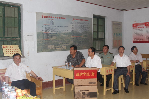 辛丕宏、丁子信一行首先到俎店乡的刘营村、宁安州、李楼村实地查看了“第一书记”的办公、食宿场所,并与当地村干部亲切交谈,详细了解“第一书记”到岗后工作开展情况及生活情况,并为村里带去了微机等办公用品。随后,在李楼村召开了座谈会,与莘县、俎店乡党政领导同志就我校选派的“第一书记”工作开展情况进行了交流。朱加云简要介绍了莘县经济社会发展等各方面的情况,秦爱利充分肯定了我校派出的“第一书记”的工作成绩。辛丕宏说,选派“第一书记”驻村帮包、抓党建促脱贫工作,是省委贯彻中央农村扶贫开发工作部署、践行党的宗旨的具体体现,是扎实开展“基层组织建设年”活动的重要举措,学校党委对此十分重视,进行了专门研究和部署。他希望,学校派出的“第一书记”在这三年的帮包工作中,一定要牢记使命,不负重托,在当地各级党委的领导下,紧紧依靠当地领导干部和群众,深入搞好调查研究,明确工作目标要求,以求真务实的作风扎实做好各项工作。他要求“第一书记”自觉遵守当地党委政府的规章制度,服从工作安排,不搞特殊化,不给帮包村增加负担。最后,他勉励“第一书记”多向基层干部学习,多向农民兄弟请教,多为基层群众办好事、办实事,做到学有所获、干有所成。