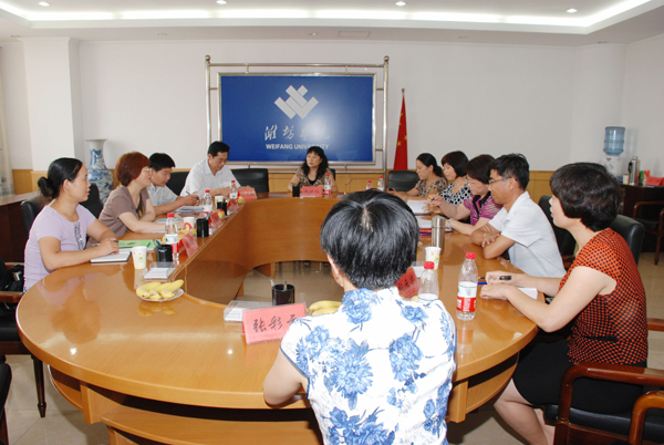 本站讯 8月29日,潍坊市委统战部副部长徐海宏等一行3人,来校调研督查统战政策落实情况。党委副书记牛钟顺主持情况汇报会。徐海宏等通过听取汇报、召开座谈会、查看有关材料,认为我校统战工作领导重视,组织机构完善,政策落实到位,工作卓有成效。