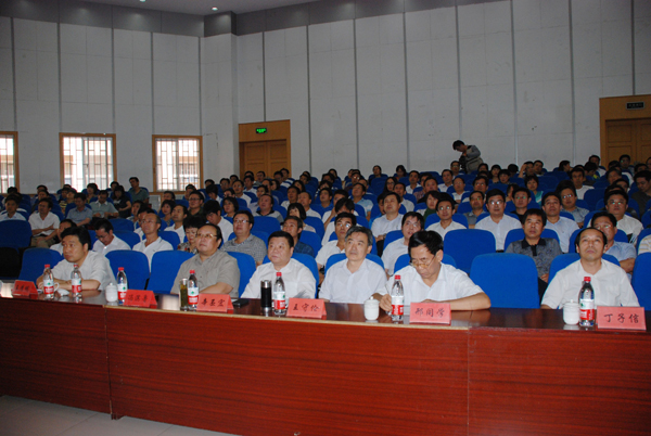 本站讯 9月13日,学校党委理论中心组(扩大)举行报告会,集体学习了胡锦涛同志在省部级主要领导干部专题研讨班上的重要讲话精神。党委书记辛丕宏主持报告会,他要求进一步统一思想认识,密切联系实际,推动当前工作。本次学习采取集中观看辅导录像的方法,观看了中央党校