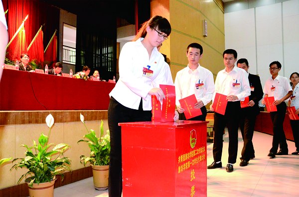下午,大会第三次全体会议选举产生了我校新一届团委委员、学生委员会委员,并表决通过了《共青团潍坊学院第二次代表大会、潍坊学院第一次学生代表大会大会决议》和《潍坊学院学生会章程》。