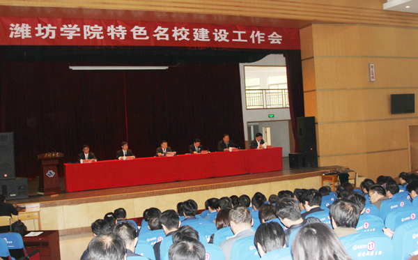会上,冯滨鲁宣读了《潍坊学院应用型人才培养特色名校建设工程实施方案》。方案从指导思想、建设目标、建设内容、实施步骤、保障措施等五个方面作了全面阐述。