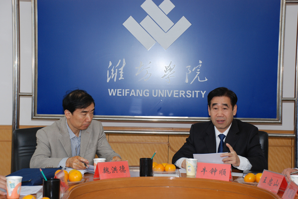 本站讯 10月26日,潍坊市建设学习型党组织工作督查组一行3人,在组长潍坊市委机关工委副调研员魏洪德的带领下,来校督查相关工作。党委副书记牛钟顺主持情况汇报会。督查组通过听取汇报、查看材料、召开座谈会、测评满意度等环节,认为我校相关工作领导重视,制度完善,措施得力,卓有成效。