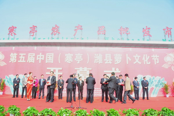 开幕式上举行了《潍县萝卜》一书发行仪式和潍县萝卜被评为“中国果蔬十大驰名品牌”授牌仪式。邢同学围绕《潍县萝卜》一书的编纂情况,特别是对其中收录的潍坊学院潍县萝卜研究所成立五年来在萝卜栽培、育种、采后储藏加工等领域所做的研究进行了介绍,对我校与寒亭校地学术科研合作进行了宣传。